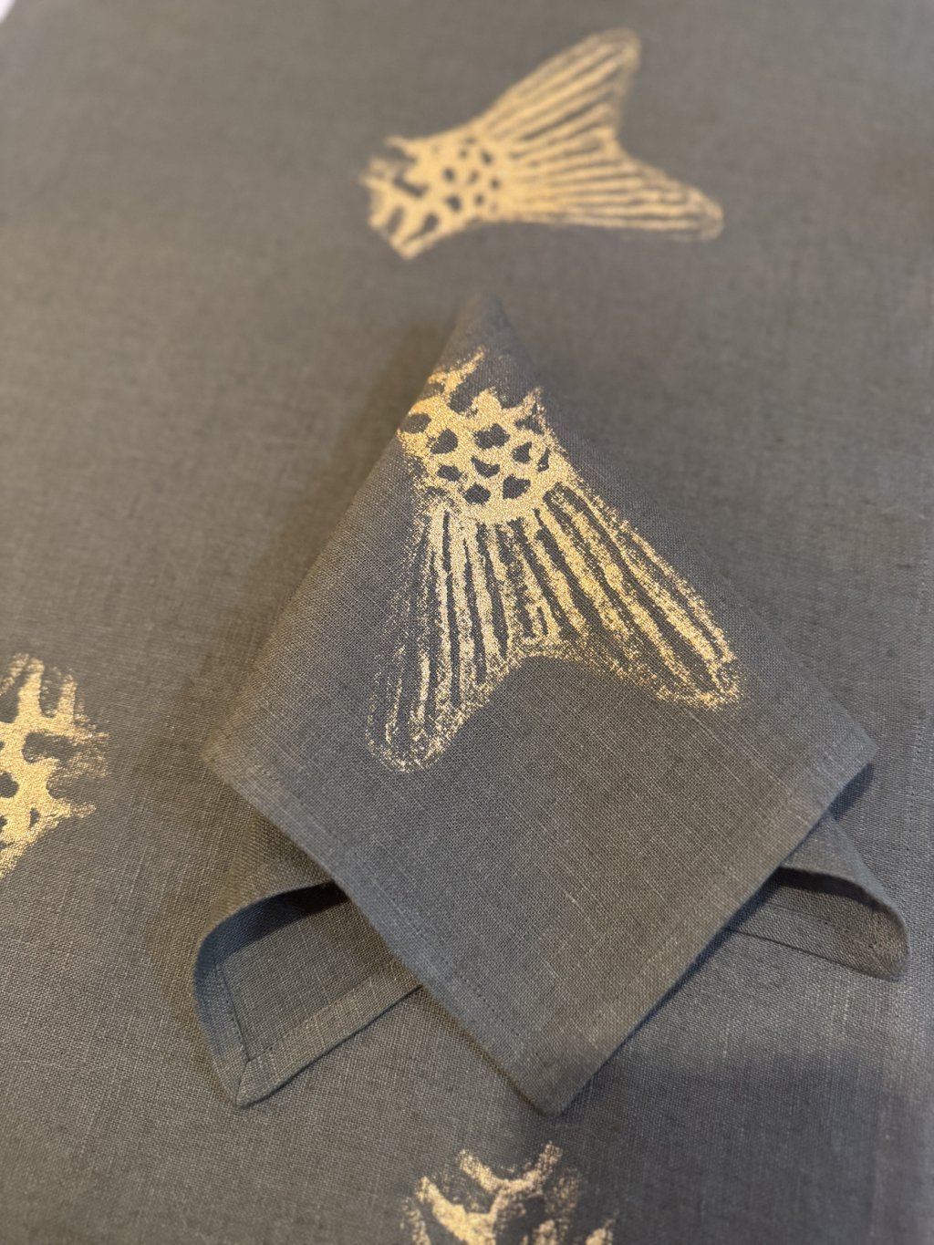Prostírka/ubrousek je součástí limitované série a je navržen i vyroben v našem ateliéru a doplňuje do kombinace ubrus nebo běhoun se stejným motivem.